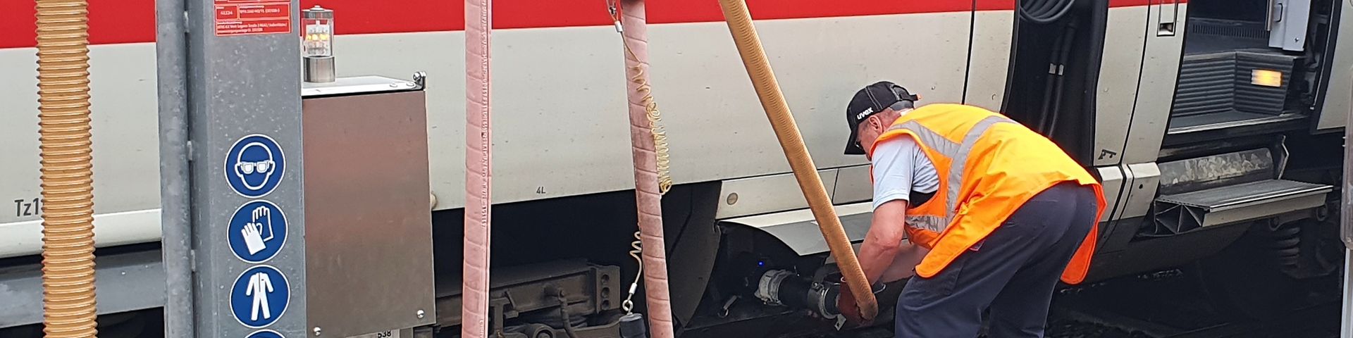 Für das reibungslose Funktionieren der WC-Anlagen in ICE-Zügen müssen die Abwassertanks regelmäßig entleert werden. Dabei ist es wichtig, dass die Tanks vollständig geleert werden und nicht verstopft sind, sonst droht eine Sperrung des WC´s, oder ein wartungsbedingter Zugausfall.