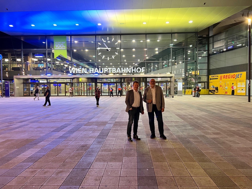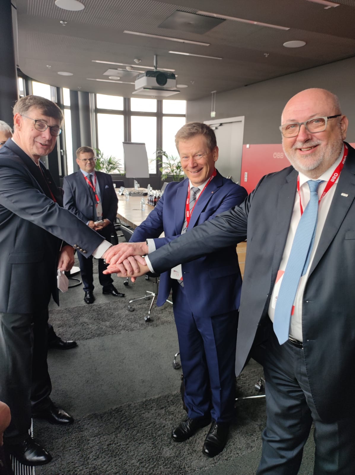 Das unterstrich Richard Lutz mit seinem österreichischen Kollegen, Andreas Matthä, und seinem polnischen Kollegen, Krzysztof Mamiński auf einer gemeinsamen Pressekonferenz. Neben der akuten Unterstützung jetzt, sei, so Richard Lutz, es ebenso wichtig, dass die Eisenbahninfrastruktur in der Ukraine schnell wieder aufgebaut werde und das Land auf der Schiene noch enger mit dem Eisenbahnnetz der EU zusammenwachse.