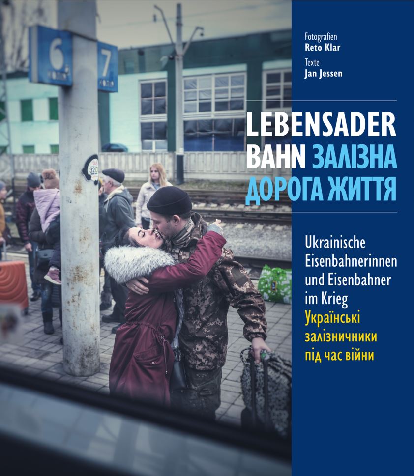 Die Fotoausstellung „Lebensader Bahn - Ukrainische Eisenbahner:innen und Eisenbahner im Krieg“ wurde als Kooperation mit der FUNKE Mediengruppe konzipiert und ist ein lebendiges Tagebuch des Kriegsalltags, zusammengestellt von dem Fotografen Reto Klar und dem Journalisten Jan Jessen im März 2023. Sie ist den Menschen in und aus der Ukraine gewidmet, die die Hoffnung nicht verlieren. Im Mittelpunkt steht dabei die Ukrainische Eisenbahn, die zu einem zentralen Symbol für Widerstandskraft und Stärke geworden ist.