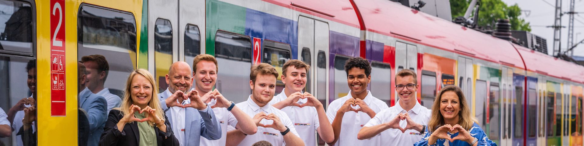 Eine Gruppe von Azubis der DB Regio NRW hat dafür gesorgt, dass Köln noch ein Stückchen bunter geworden ist: Sie haben eine S-Bahn mit Regenbogenfarben entworfen, die auf unbestimmte Zeit durch das Rheinland und die Domstadt rollt. Getreu dem Motto „Genauso bunt wie Ihr“ wollen sie mit dem Zug ein klares Zeichen für eine offene Gesellschaft ohne Diskriminierung setzen und ihre Haltung für alle Menschen sichtbar in die Region hineintragen. Das Timing konnte nicht besser sein: Pünktlich zum Christopher Street Day (CSD), an dem am 3. Juli in Köln mehr als eine Million Menschen teilgenommen haben, ist die Regenbogen-S-Bahn auf den Linien S 12 und S 19 unterwegs.