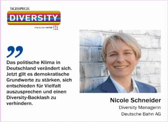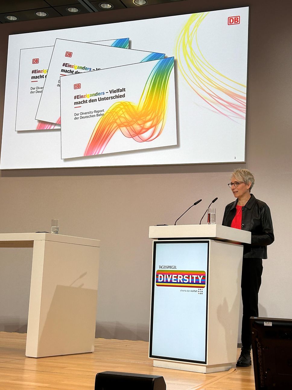 Die Deutsche Bahn stellte auf der Diversity Konferenz der Charta der Vielfalt am 07.11.2023 ihren Diversity Report vor. Die DIVERSITY Konferenz 2023. ist eine gemeinsame Veranstaltung der Charta der Vielfalt e.V. und des Verlags Der Tagesspiegel.