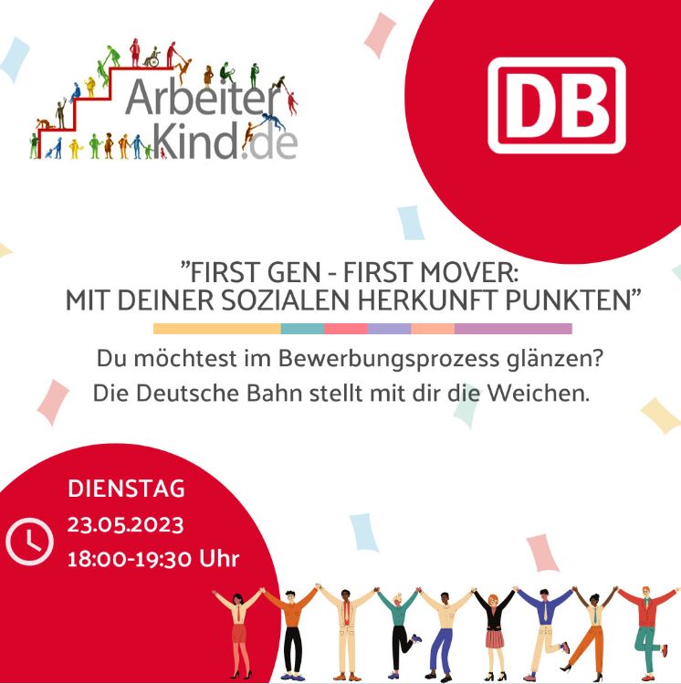 Die DB Personalgewinnung lädt gemeinsam mit dem Netzwerk Arbeiterkind.de Erstakademiker:innen ein, virtuell Einblicke über Auswahlprozesse zu erhalten. Arbeiterkind.de ist das Netzwerk für Menschen, die als Erste in ihrer Familie studieren. Zu Beginn des Workshops werden die Zuhörer:innen von Franziska Manck, Leiterin Talent Acquisition Executive und Graduate, erfahren, welche Rolle die Diversity Dimension Soziale Herkunft für die Deutsche Bahn spielt. Als Role Model wird die Personalleiterin DB Fahrzeuginstandhaltung des Werk Cottbus, Janet Jurk, erzählen, welche Rolle ihre eigene soziale Herkunft auf ihrem Karriereweg gespielt hat und welche Vorteile und Herausforderungen ihr als Erstakademikerin begegnet sind. Als Herz des Workshops erhalten die Zuhörer:innen von Julia Waldenburger Einblicke/Insights und Tipps&Tricks für den Bewerbungsprozess aus dem Graduate Recruiting: