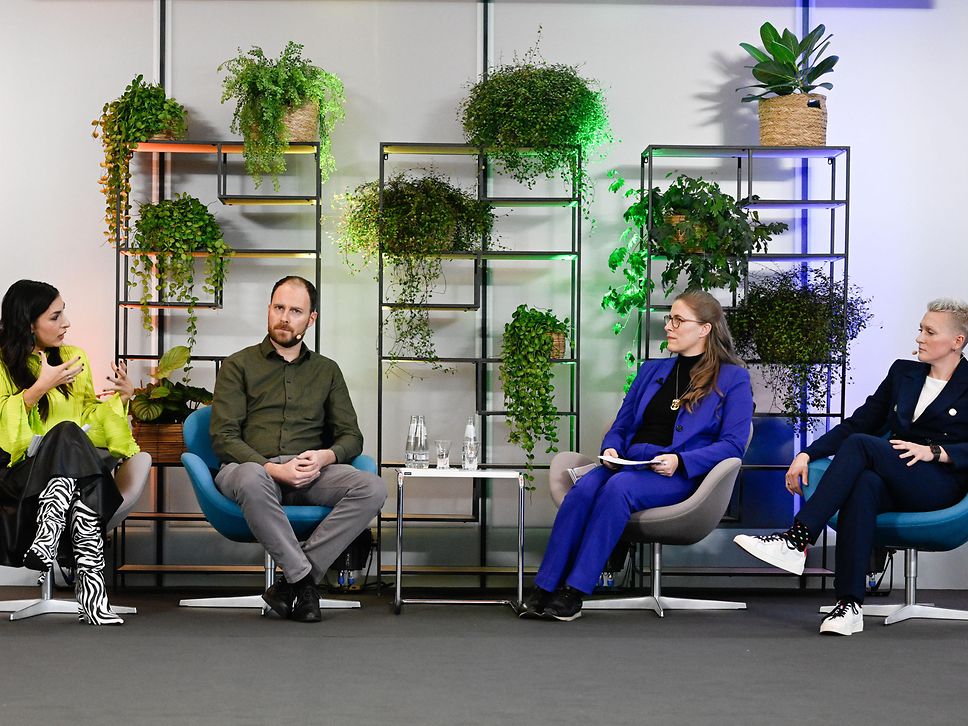 Im anschließenden Panel mit Mo Asumang, Aslihan Gebhart (Leiterin Hochleistungsnetz Generalsanierung des Korridors Obertraublingen-Paussau, DB Netz AG), Franzi von Kempis (Geschäftsführerin Charta der Vielfalt e.V.) und Oliver Terhaag (Vorstand Regio Schiene der DB Regio AG) ging es um die Frage, wie es der DB gelingt, eine Kultur der Zugehörigkeit zu schaffen. Oliver Terhaag machte klar, es sei notwendig, dass Mitarbeitende sich wohl fühlen, um ihre volle Kreativität und Arbeitskraft entfalten können. Franzi von Kempis verwies auf die Bedeutung von Intersektionalität: