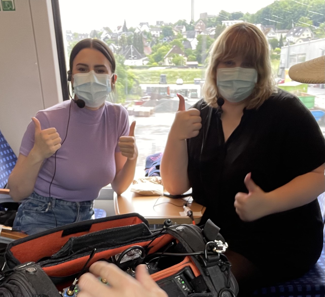 Giulia Becker ist Comedienne, Autorin, Podcasterin und vor allem: Drinnie. Ihren eigenen, gleichnamigen Podcast “Drinnies” nimmt sie gemeinsam mit ihrem Freund Chris Sommer “in der Komfortzone”, also zu Hause auf. Ein größerer Kontrast zu “Unterwegs mit...” ist produktionstechnisch also kaum möglich, darum fühlt sich Salwa Houmsi sehr geehrt, dass Becker ihrer Einladung zum Gespräch in der Bahn gefolgt ist. Houmsi begleitet Becker mit dem Regionalexpress von Köln-Ehrenfeld nach Siegen. Von dort geht es für Giulia Becker in ein kleines Dorf im Siegerland, wo sie ursprünglich herkommt und das sie von Köln aus regelmäßig besucht, um ihre Mutter oder Freund:innen zu sehen.