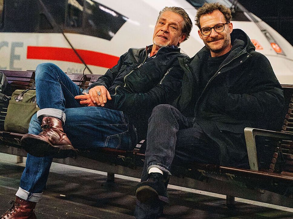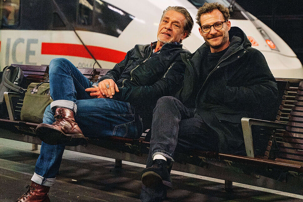 Kurz vor Abfahrt: Hajo Schumacher und Sebastian E. Merget am Bahnsteig des Berliner Hauptbahnhofs