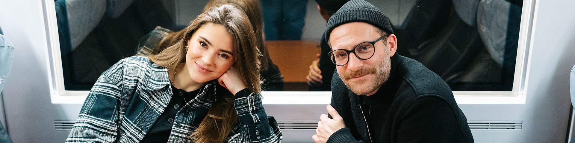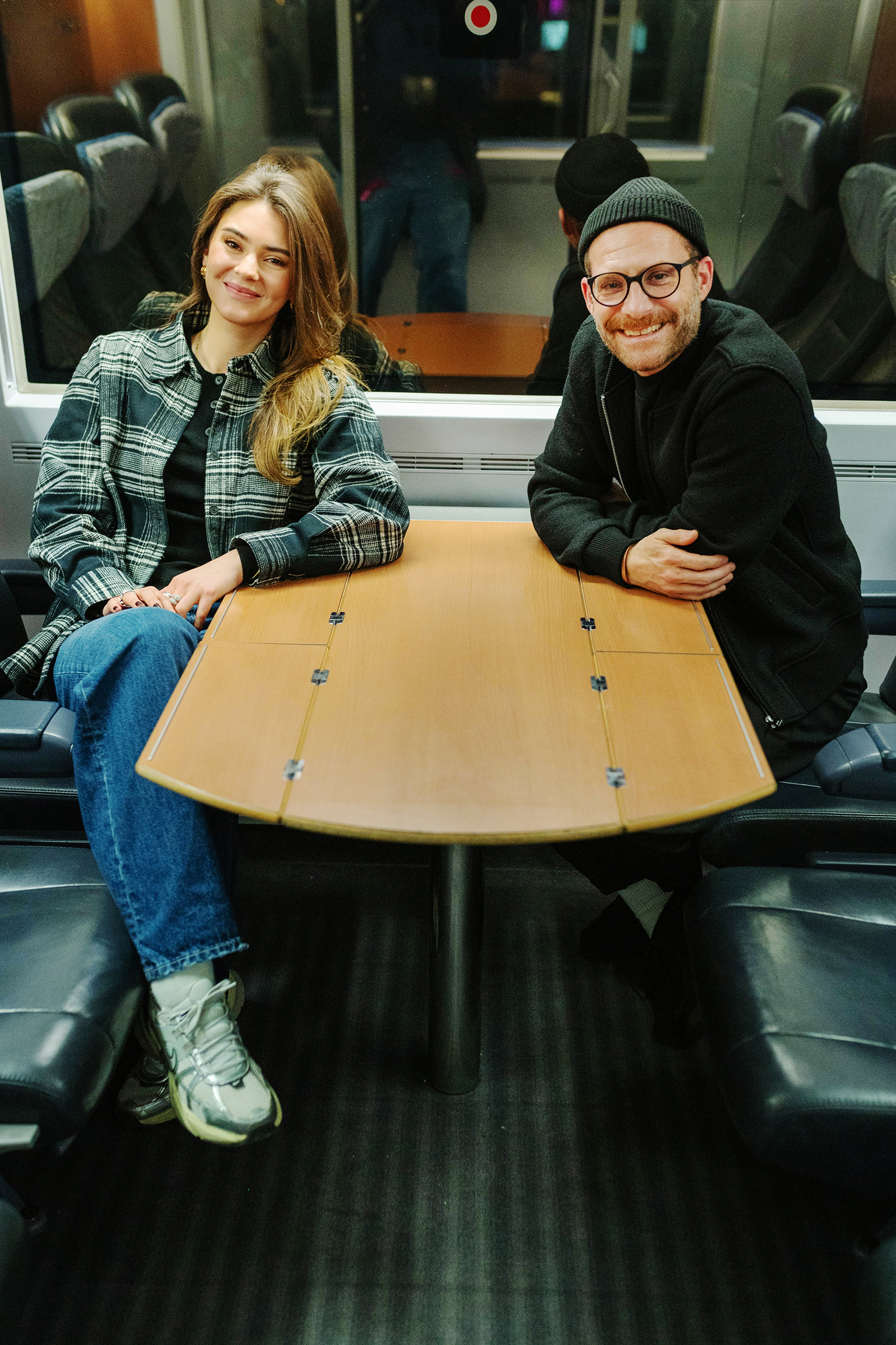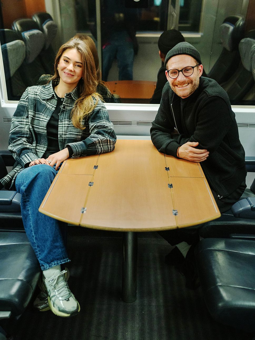 Nehmen Fahrt auf: Stefanie Giesinger und Sebastian E. Merget im Zug von Köln nach Berlin
