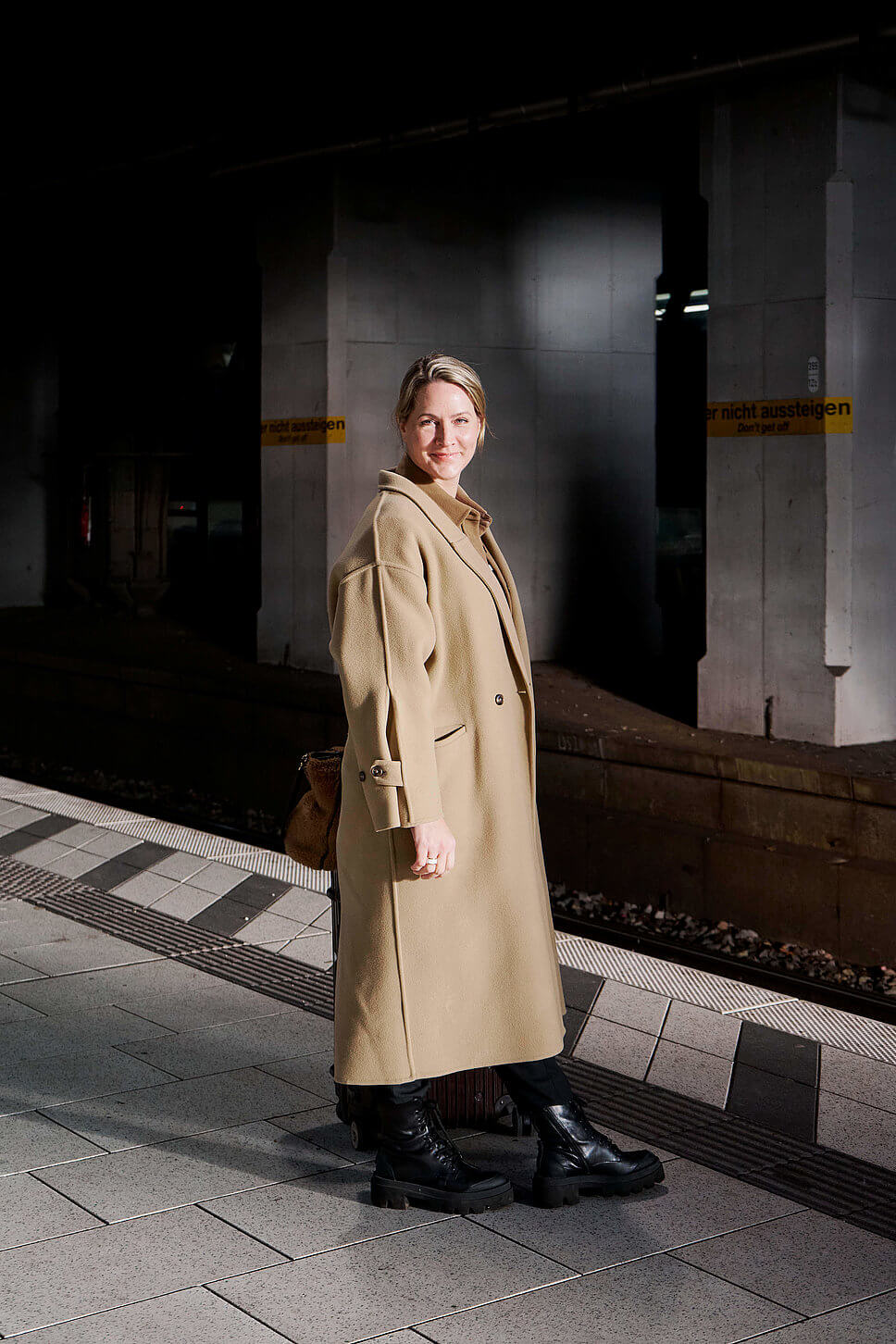 Judith Rakers am Bahnsteig