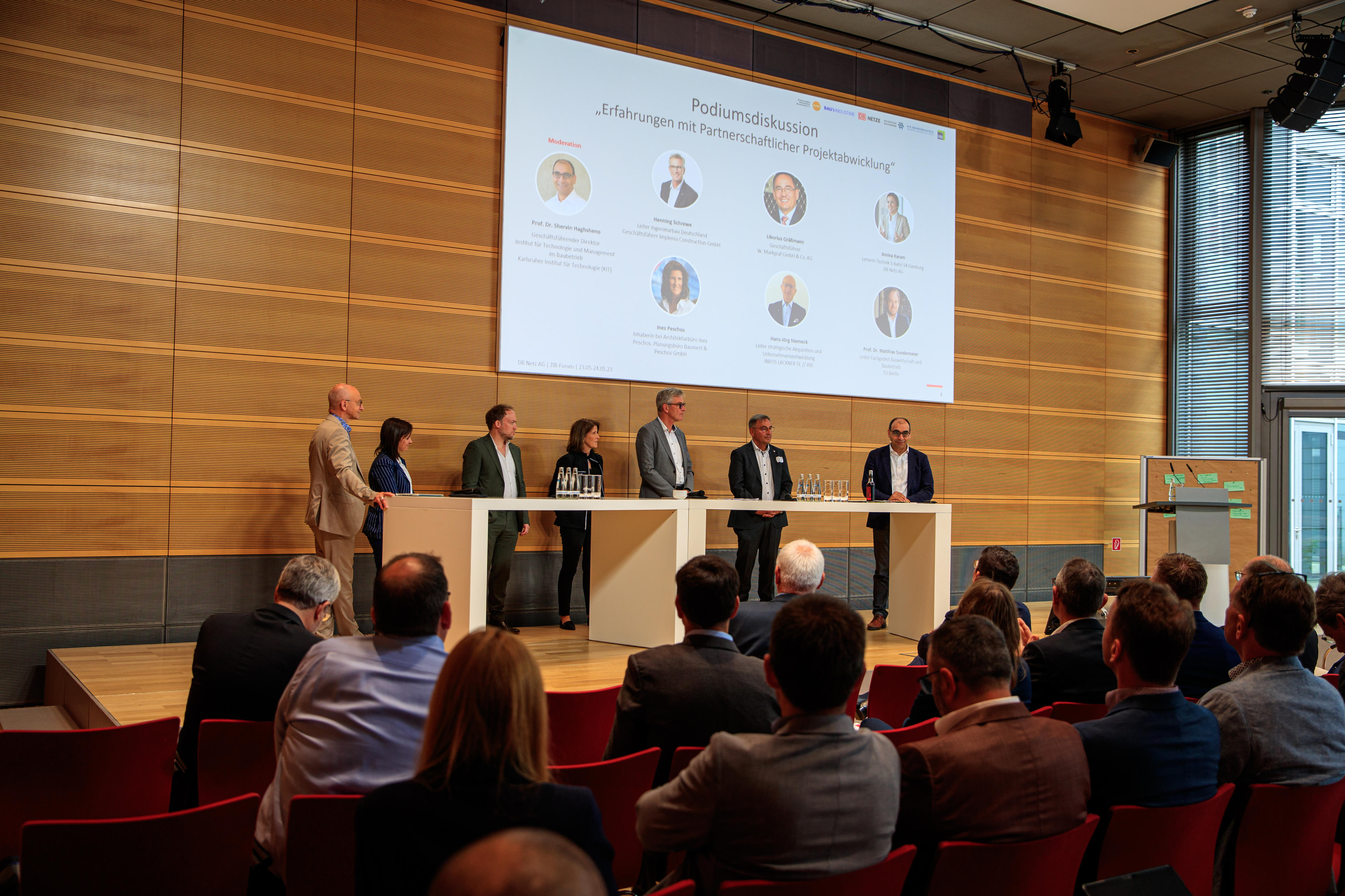 Den inhaltlichen Abschluss der Veranstaltung bildete eine Podiumsdiskussion zu den „Erfahrungen mit der Partnerschaftlichen Projektabwicklung“ (PPA). „Gute Zusammenarbeit muss man wollen“, dies war der Leitsatz der Diskussionsrunde. Gegenseitiges Vertrauen bildet das Fundament für erfolgreiche und wirtschaftliche  Projekte und muss noch stärker in den Fokus genommen werden, um auch die Attraktivität der Bahnbauberufe für alle Beteiligten zu erhöhen. Dabei spielt die jeweilige Vertragskonstellation, ob nun „konventionell“ oder „PPA“ eher eine untergeordnete Rolle.