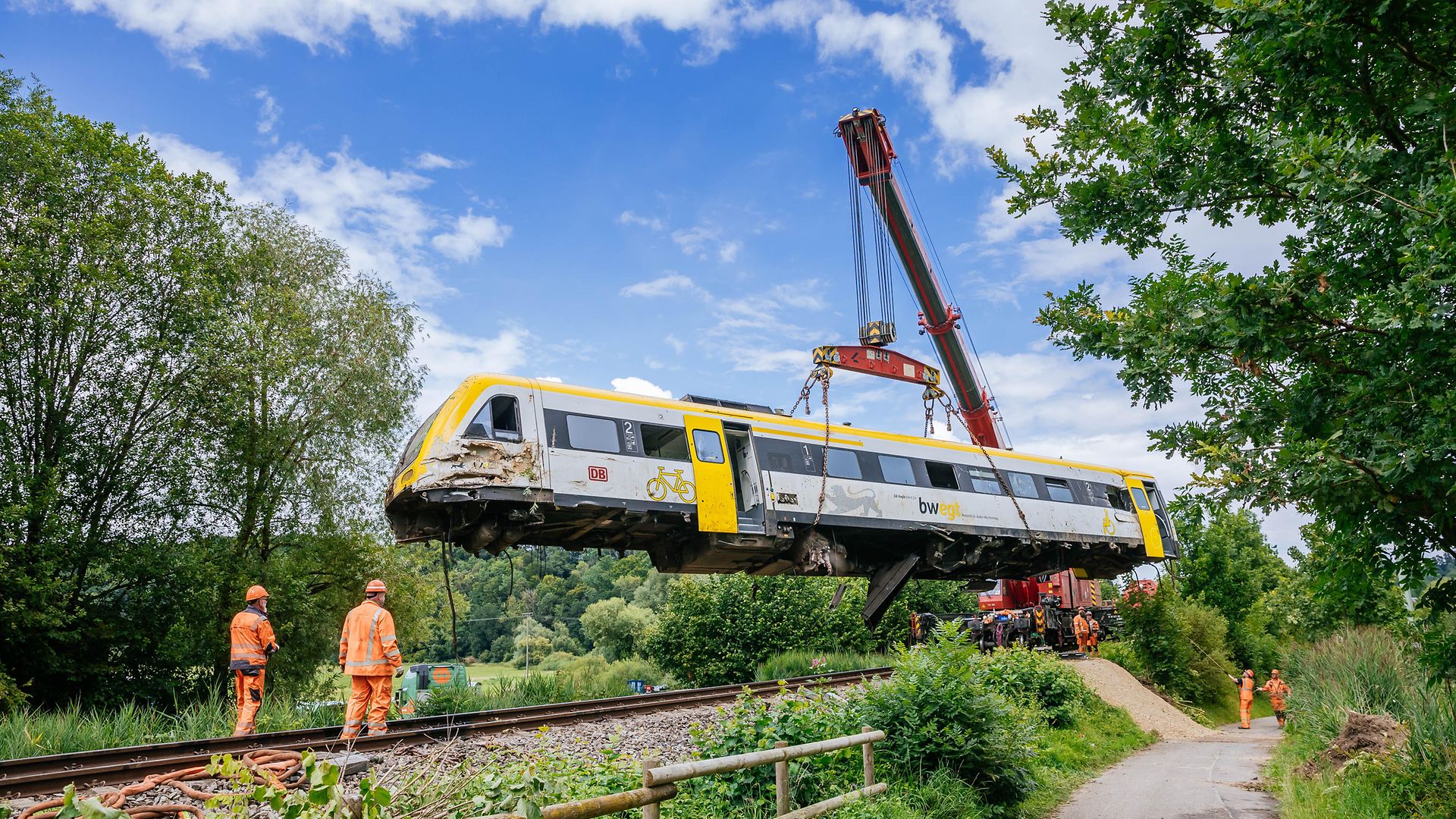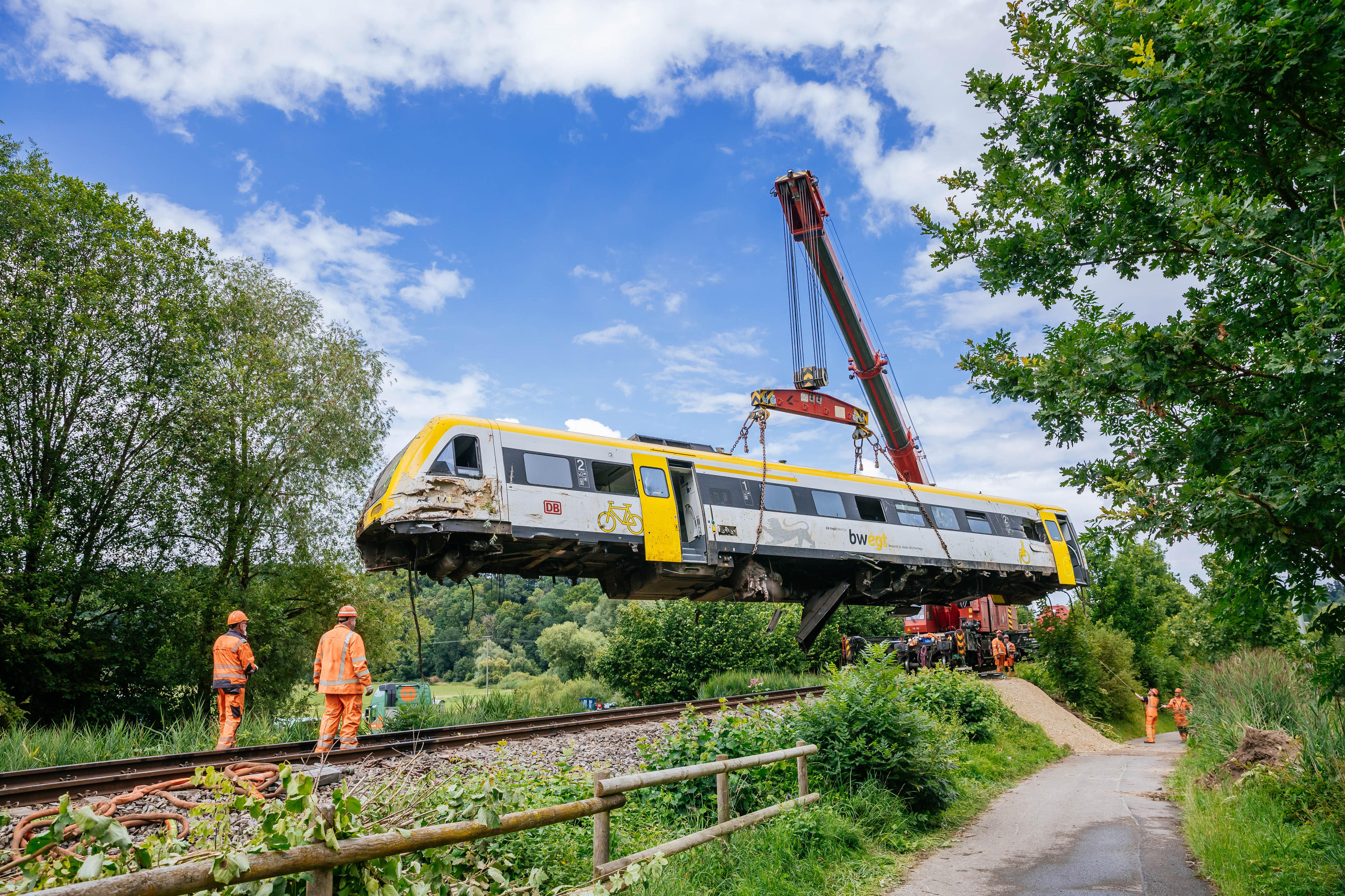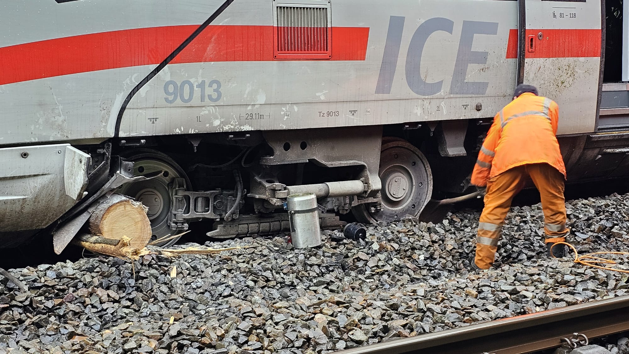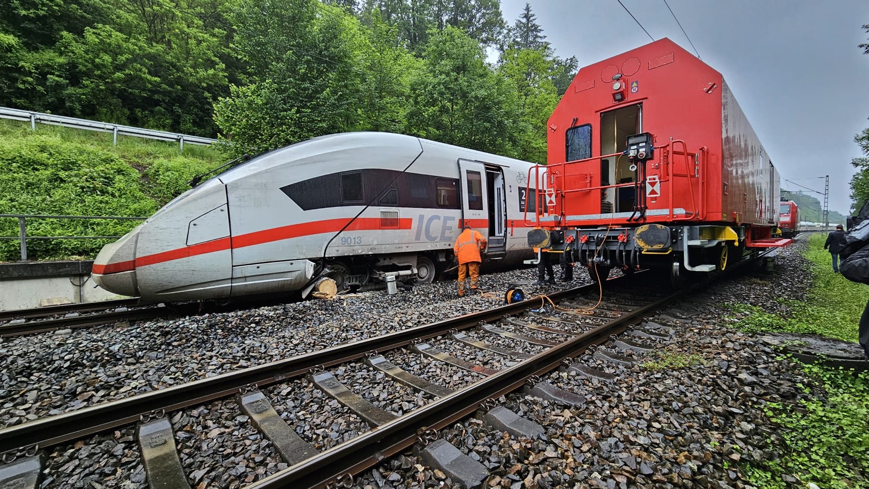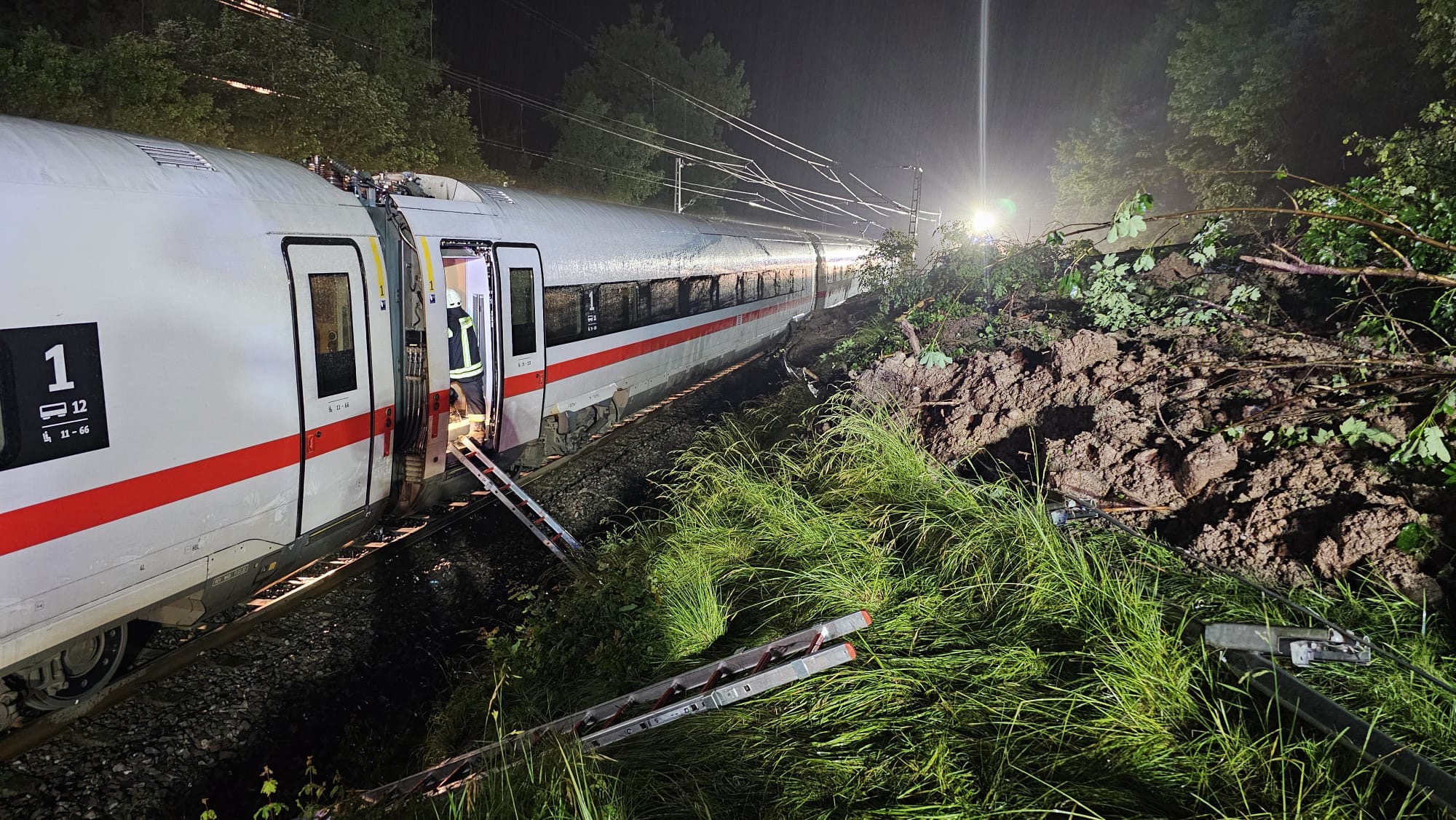 Update: Die Aufgleisung des ICE auf der Strecke zwischen Schwäbisch-Gmünd und Lorch ist mittlerweile erfolgt und der Abschnitt kann wieder eingleisig befahren werden. Der Fernverkehr fährt nach starken Regenfällen wieder vereinzelt zwischen München und Stuttgart. Der Regionalverkehr zwischen Aalen und Stuttgart läuft ebenfalls wieder an. Reisende müssen aber weiterhin mit Ausfällen und Verspätungen rechnen. Auch in vielen anderen Teilen Süddeutschland kommt es zu erheblichen Einschränkungen. Wir bitten die Fahrgäste, sich vor Fahrtantritt im DB Navigator oder auf bahn.de/aktuell zu informieren. In der Nacht zum Sonntag ist der ICE 510 auf dem Weg von München nach Köln bei Schwäbisch-Gmünd auf einen Erdrutsch aufgefahren. Dabei sind zwei Wagons aus den Gleisen gesprungen. Verletzt wurde niemand. Die Fahrgäste im ICE konnten ihre Fahrt mit Bussen fortsetzen.Spezialkräfte der DB konnten am Sonntag die Gleise von umgefallenen Bäumen und Erdmassen befreien und den Zug wieder aufgleisen. Im Laufe des Montags soll der ICE abtransportiert werden. Die DB bedankt sich ausdrücklich bei allen Einsatzkräften für die sehr gute Zusammenarbeit vor Ort. Ein Gutachter prüft derzeit die Stabilität des betroffenen Hangs, erst dann entscheidet sich, wann die Strecke Schwäbisch-Gmünd-Lorch wieder freigegeben werden kann.
