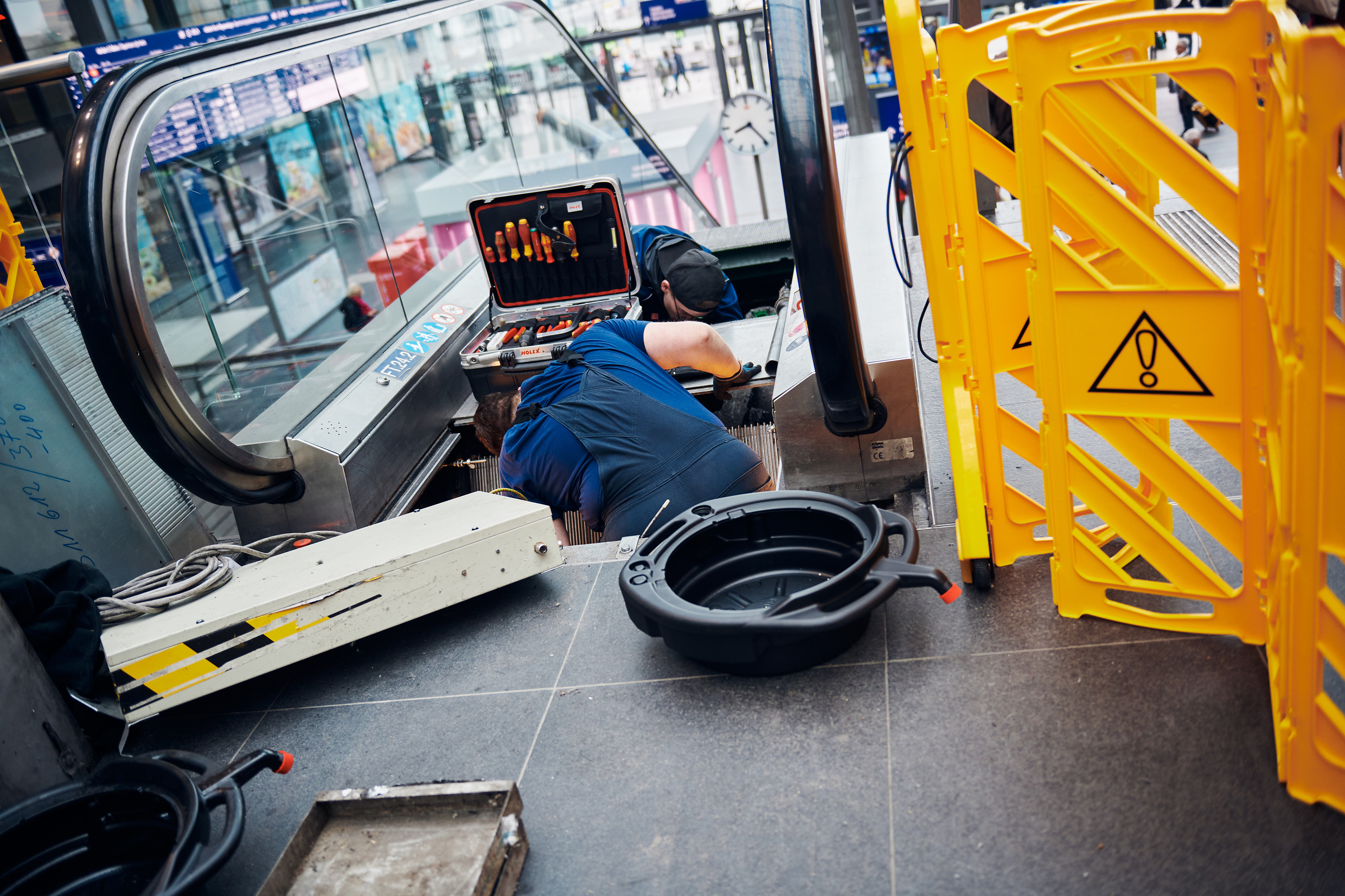 Techniker der Deutschen Bahn (DB) und des Rolltreppenherstellers KONE haben die ersten KONE-Rolltreppen am Berliner Hauptbahnhof repariert. Bis Ende nächster Woche werden DB und KONE weitere Rolltreppen funktionsfähig machen, sodass die Fahrgäste wieder über alle Ebenen durchgehend stufenlos im Berliner Hauptbahnhof unterwegs sein können.