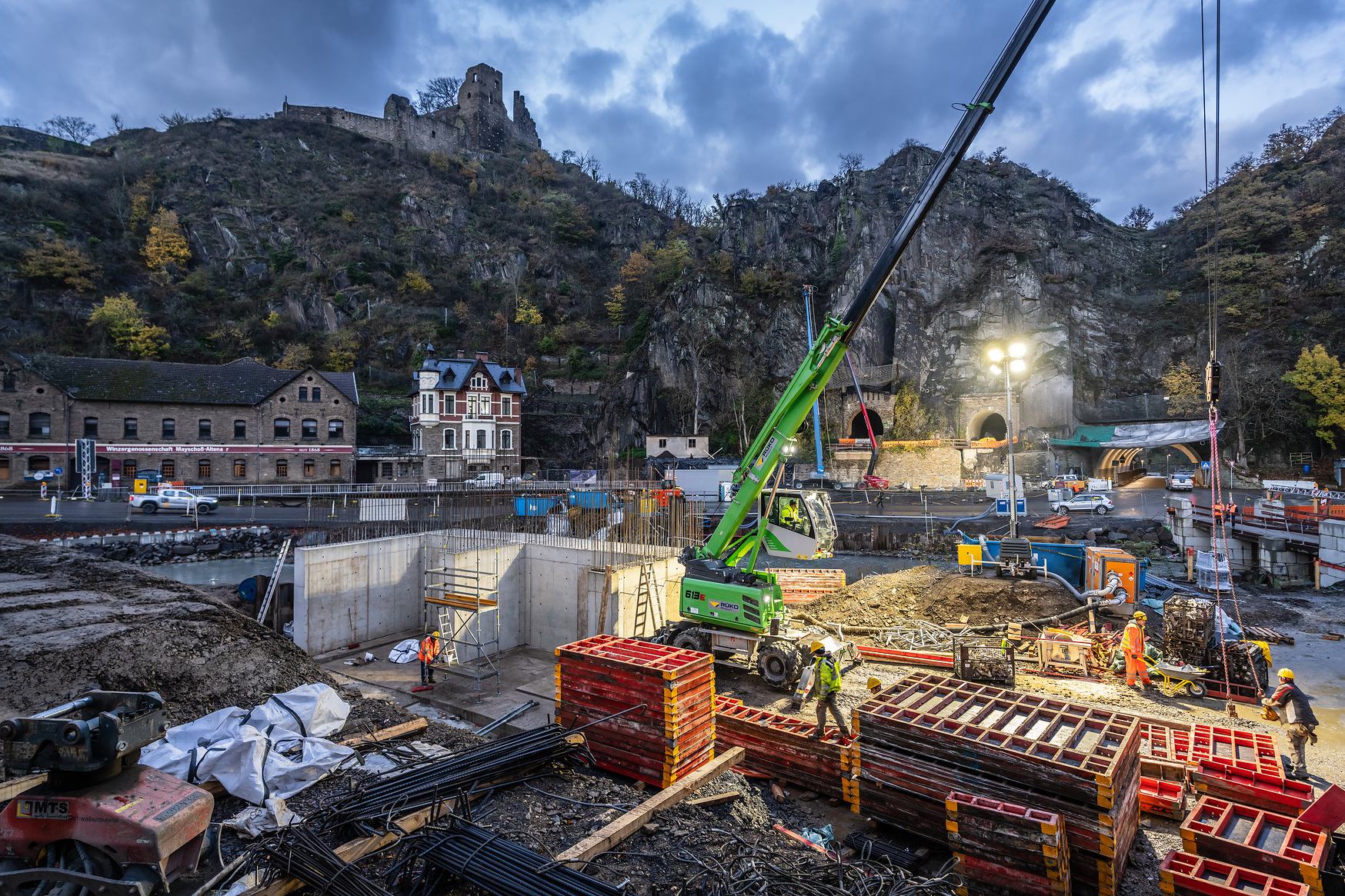 In der Ortslage Altenahr wird der Eisenbahntunnel Engelsley für die Montage einer Oberleitung vorbereitet. Der 1887 erbaute Tunnel entsprechend dem heutigen Stand der Technik aufgeweitet und mit einer neuen Tunnelinnenschale versehen.