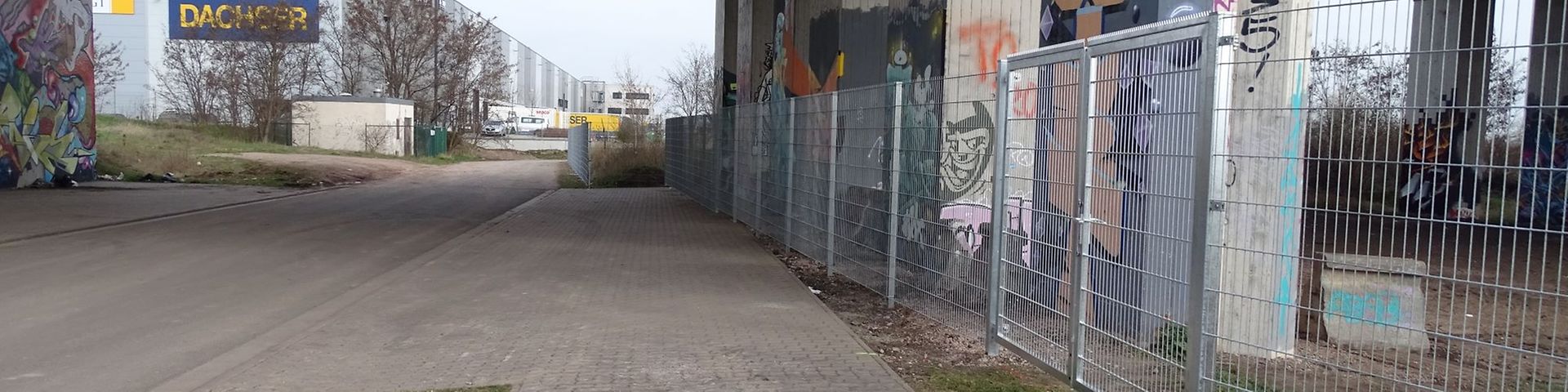 Abkürzungen über Gleise sind vielerorts beliebt – und lebensgefährlich! Das Betreten von Bahnanlagen ist verboten. Dennoch überqueren seit vielen Jahren im Bereich der Sulzaer Siedlung in Erfurt Stotternheim Personen die Gleise unbefugt, um dann unerlaubt in den Seen des angrenzenden Kies-Betonwerks baden zu gehen. Auf Betreiben der Deutschen Bahn wird nun unter der Autobahnbrücke A 71, Bergrat-Voigt-Straße, ein 120 Meter langer und zwei Meter hoher Zaun errichtet, um das illegale Abkürzen zu verhindern. Außerdem weisen neue Warnschilder auf die Gefahren hin.