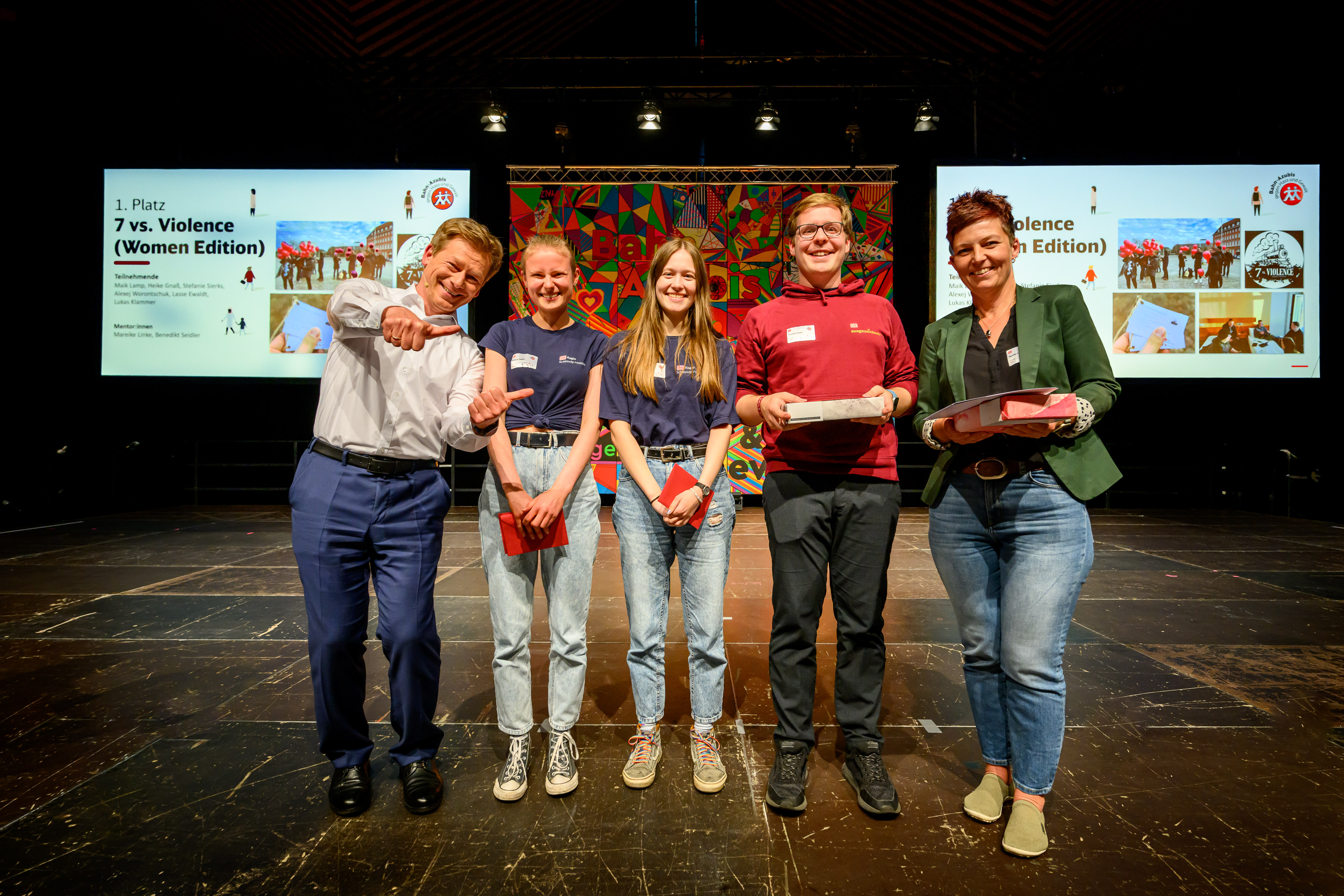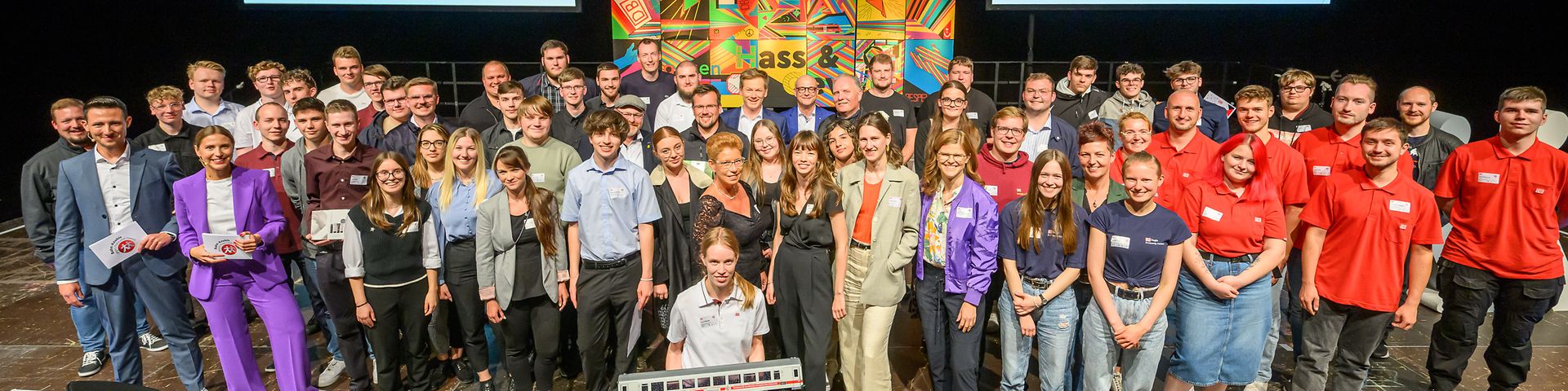 Mit dem Wettbewerb „Bahn-Azubis gegen Hass und Gewalt“ würdigt die DB seit über 20 Jahren das Engagement ihrer Nachwuchskräfte für eine offene Gesellschaft ohne Diskriminierung. Allein in diesem Jahr realisierten rund 370 Auszubildende und dual Studierende sowie 75 Mentor:innen über 50 Projekte und setzten so starke Signale für mehr Offenheit und Zivilcourage.