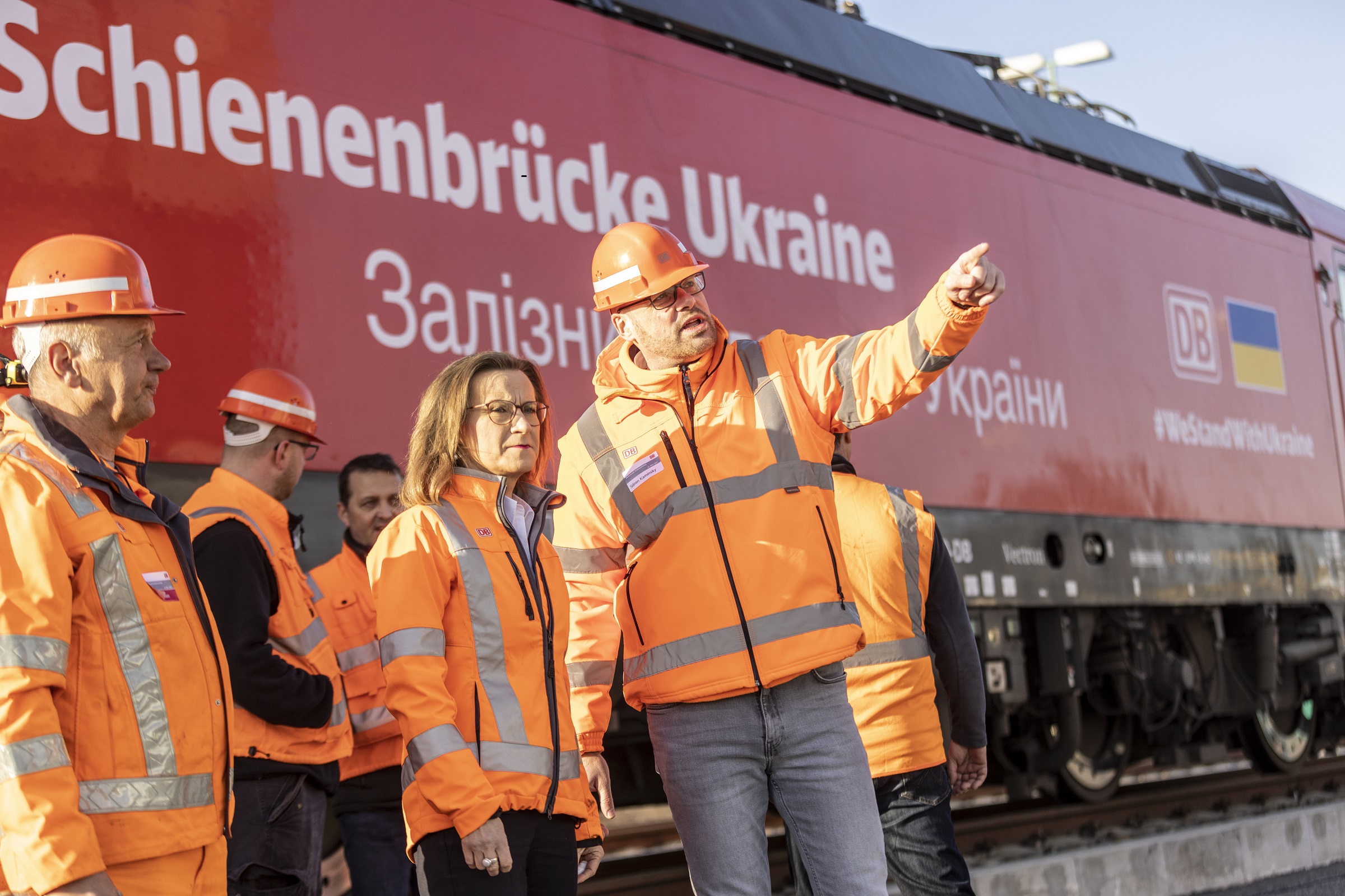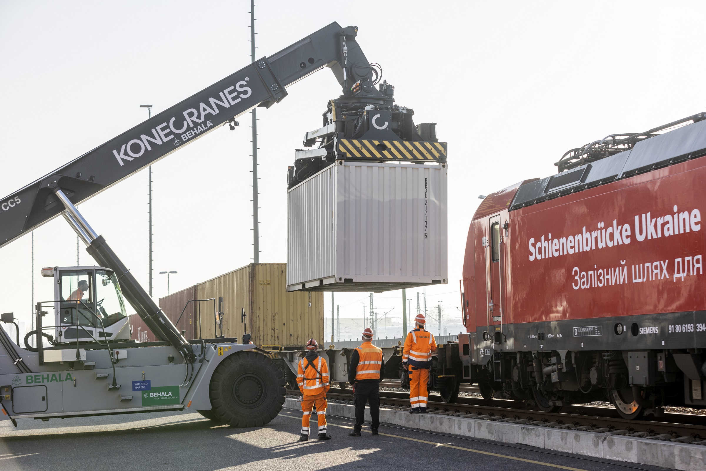 Über die DB-Schienenbrücke bringt DB Cargo seit März 2022 Hilfsgüter direkt in die vom Krieg betroffenen Gebiete. Ganze Containerzüge – beladen mit Lebensmitteln, Trinkwasser, Generatoren, Erste-Hilfe-Sets und Powerbanks – bringen dringend benötigte Güter über Krakau direkt zu Terminals in der Nähe von Kiew. Für den Transport von Rohstoffen aus der Ukraine hat die DB gemeinsam mit der ukrainischen Bahn neue Transportlösungen für Getreide und Agrarprodukte sowie Eisenerz gefunden.