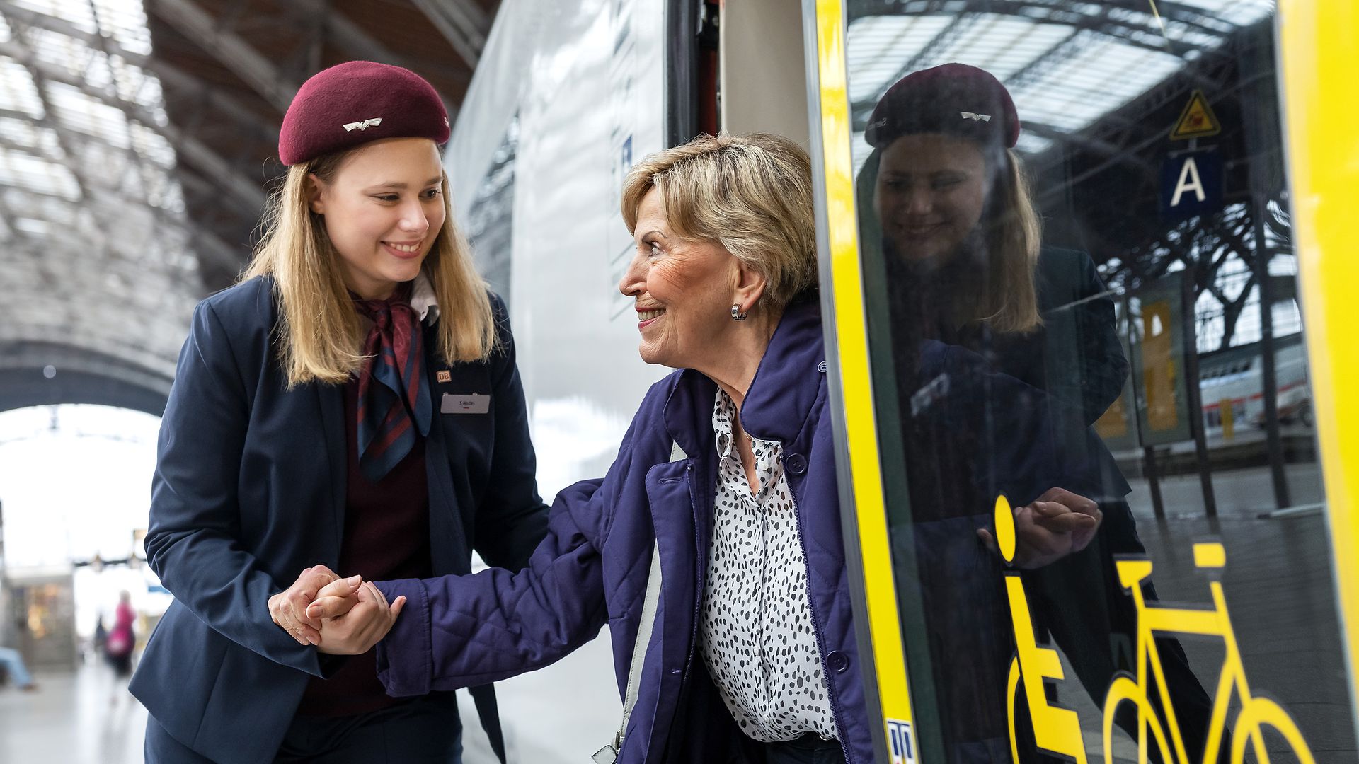 Im Jahr 2024 hat das Servicepersonal in den Bahnhöfen und in den Zügen der DB rund 828.000 Hilfeleistungen für Reisende mit Mobilitätseinschränkungen geleistet.